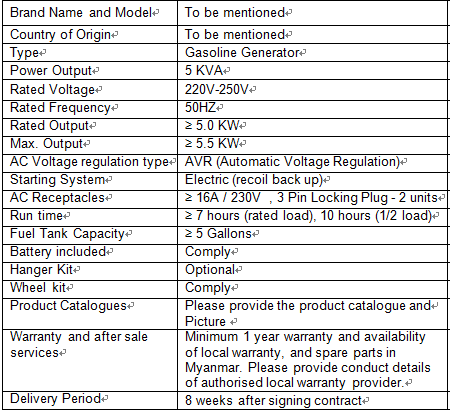 項(xiàng)目名稱:緬甸汽油發(fā)電機(jī)采購(gòu)